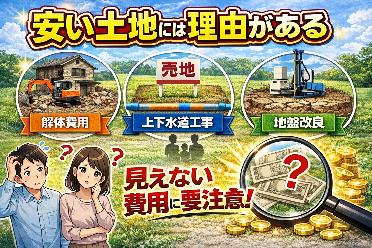 ポータルサイトなどを見ていると、広くて安い土地や、駅近なのに価格が安い土地などを見かけすることがあるかと思います。
