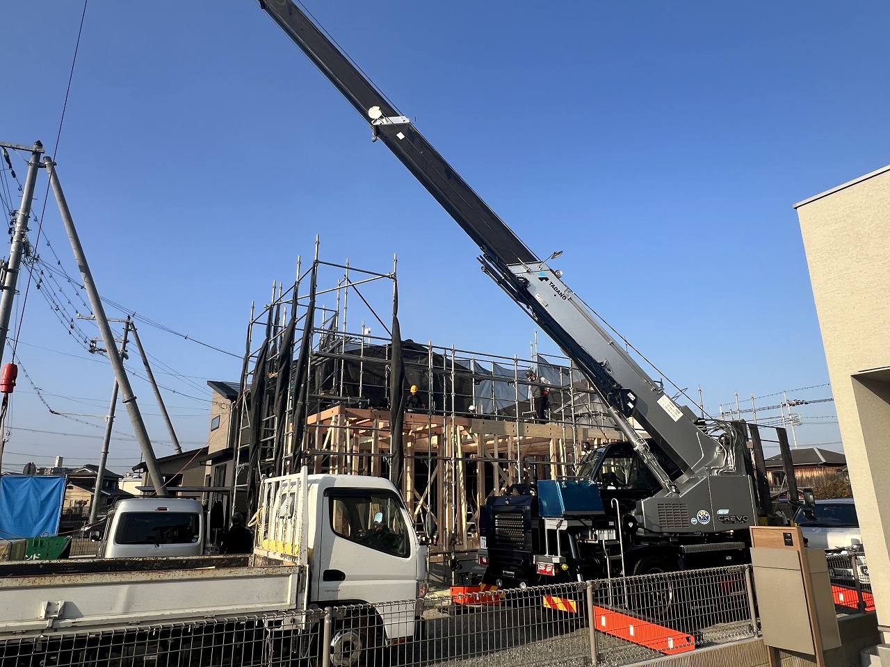 上棟の日は、一日で建物が一気に建ち上がるため、当日は4回ほど現場へ足を運びます。