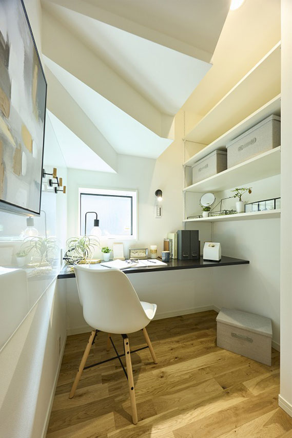 外壁は塗り壁仕上げ、無垢フローリング、ゆったりとしたサニタリーにファミリークローゼットなど、最近のトレンドをぎゅっと凝縮したモデルハウスです。