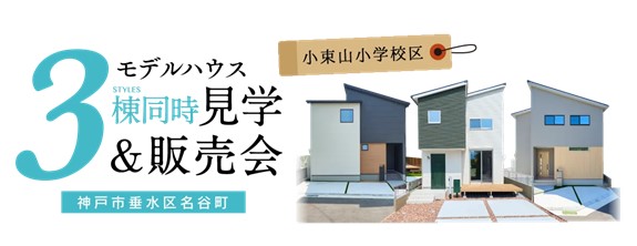 12区画分譲のうち3棟を同時に完成させ、販売会を行います。垂水区内では珍しいLDK20帖や、広々ウッドデッキ付きのお家もございます。
