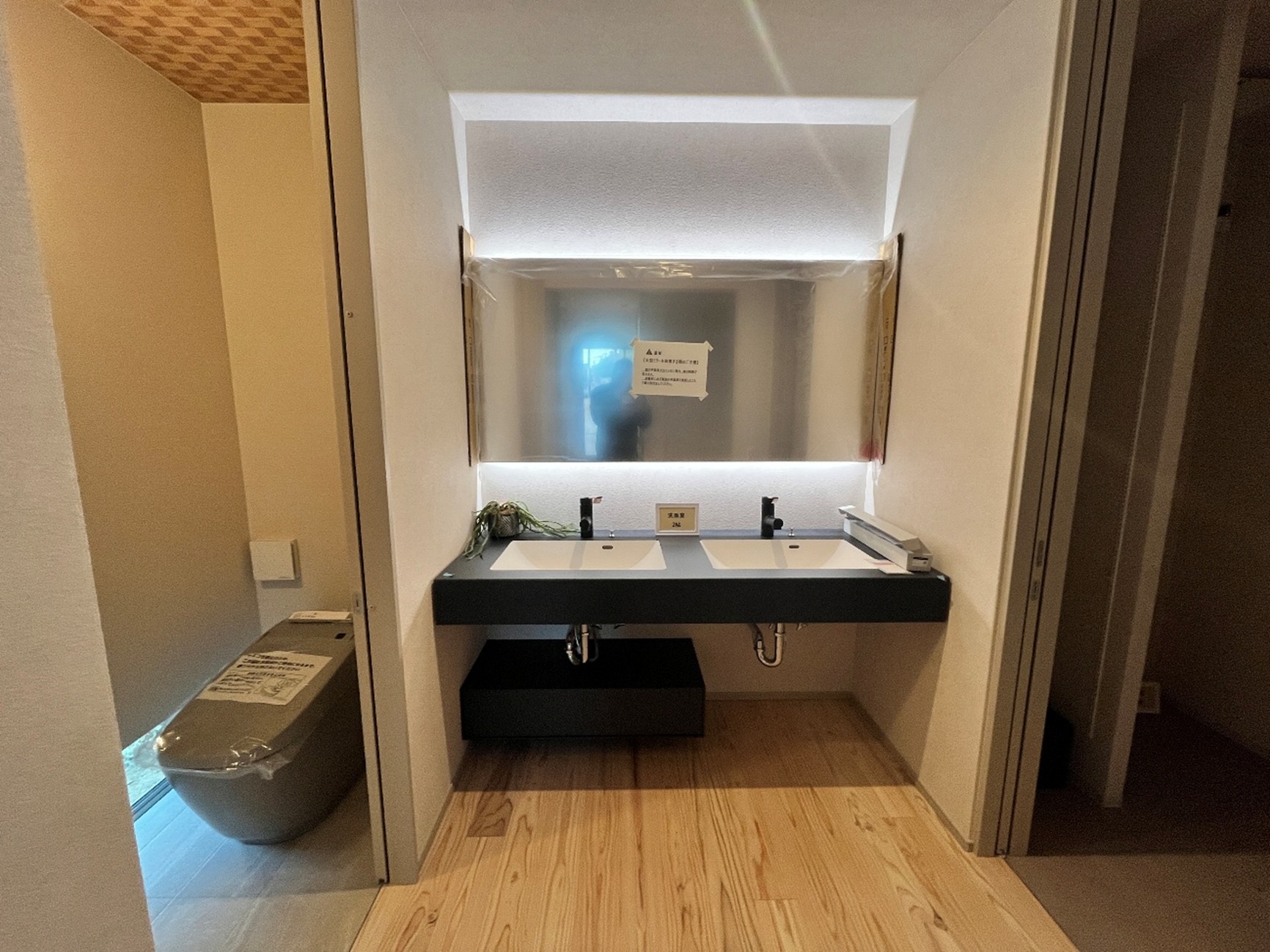 洗面台はWボウルを採用しており、手洗いや歯磨きができるため、朝の忙しい時間帯に準備をするご家族にとって嬉しい設計です。