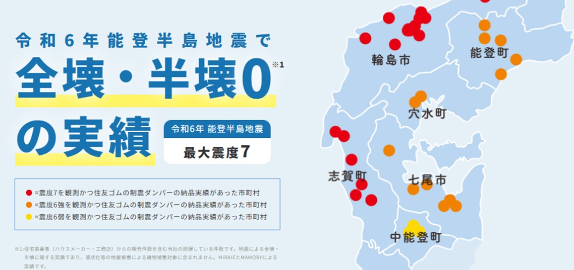 制震ダンパー「ミライエ」は熊本城や東本願寺など歴史的建造物にも採用されており、近年では令和6年能登半島地震で全壊・半壊した建物0という実績。